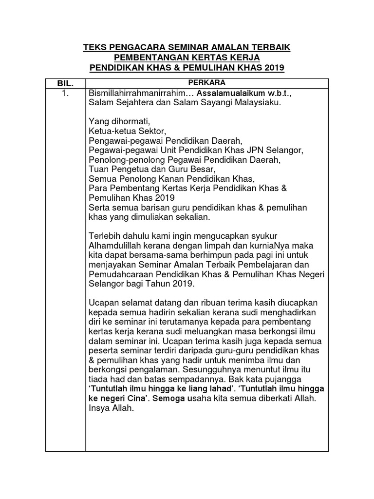 Teks Pengacara Seminar Amalan Terbaik Pembentangan Kertas Kerja Pendidikan Khas Pdf